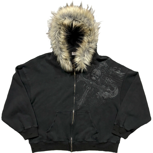 SAVE 57%PROFOUND CROSS FUR ZIP-UP HOODIE